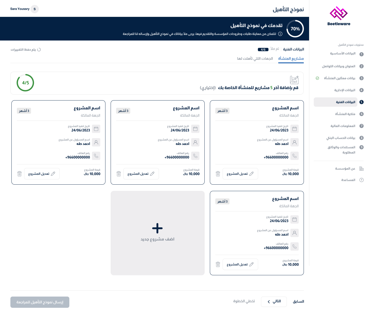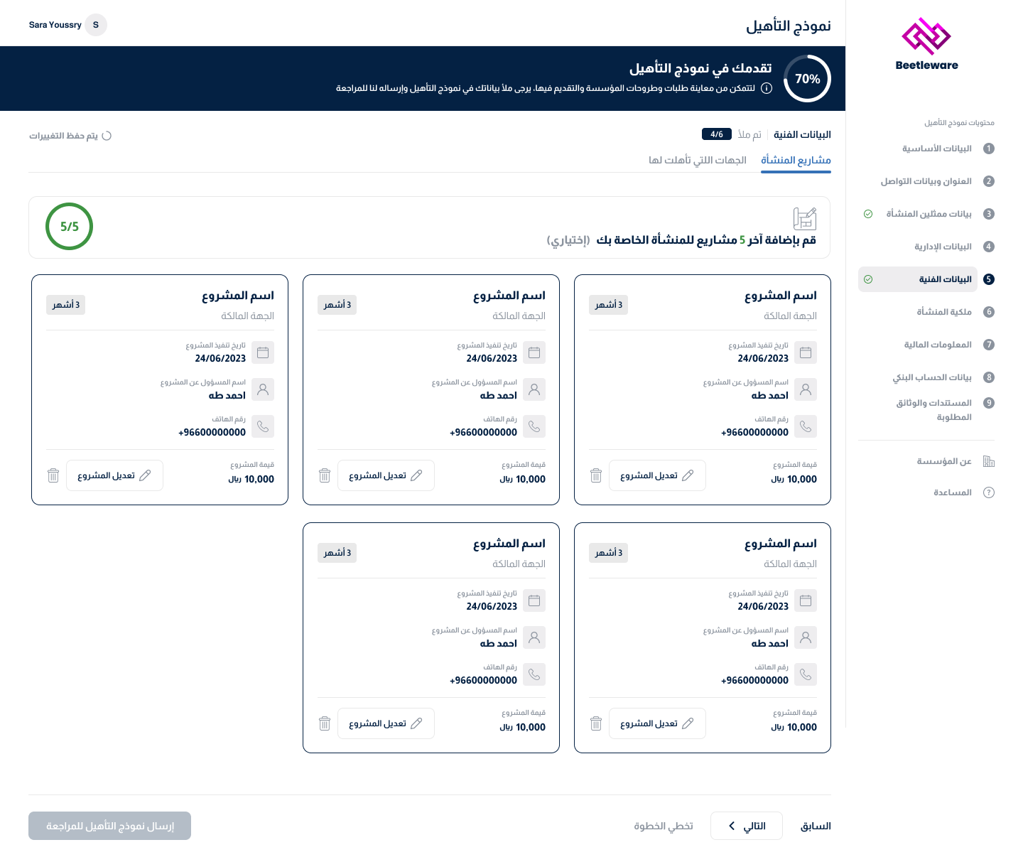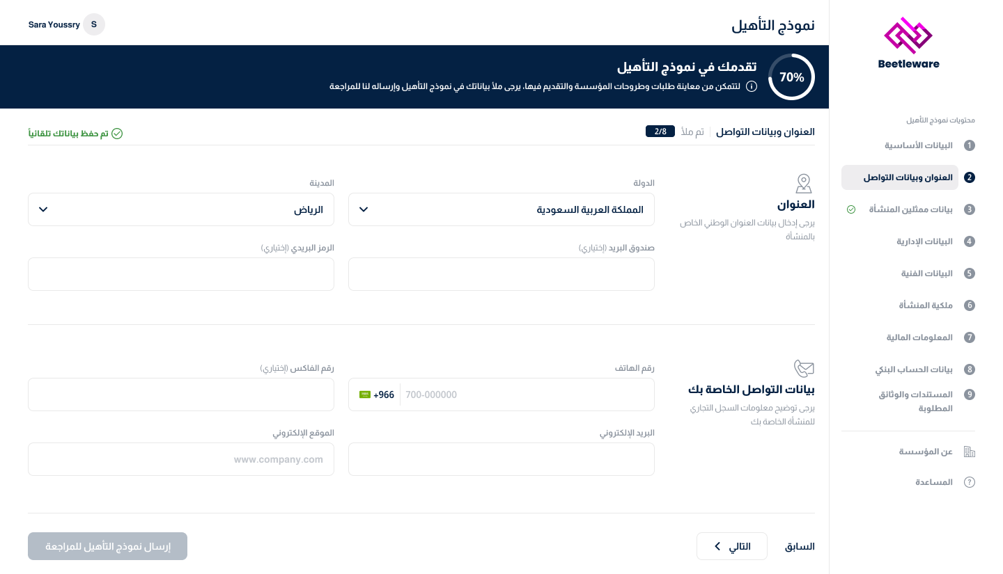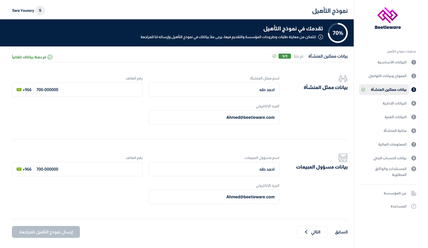 ستقوم بملأ بياناتك وبيانات المنشأة في نموذج التأهيل