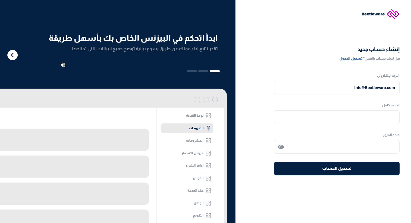 قم بتسجيل حساب جديد بواسطة البريد الإلكتروني الخاص بك