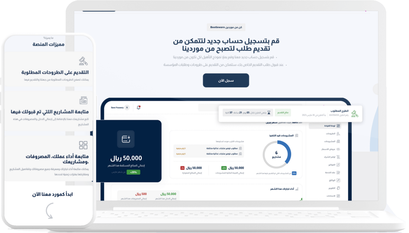 عند قبول طلبك ستتمكن من الوصول إلى لوحة القيادة للتقديم على طروحات المؤسسة ومشاهدة تفاصيل اداء عملك